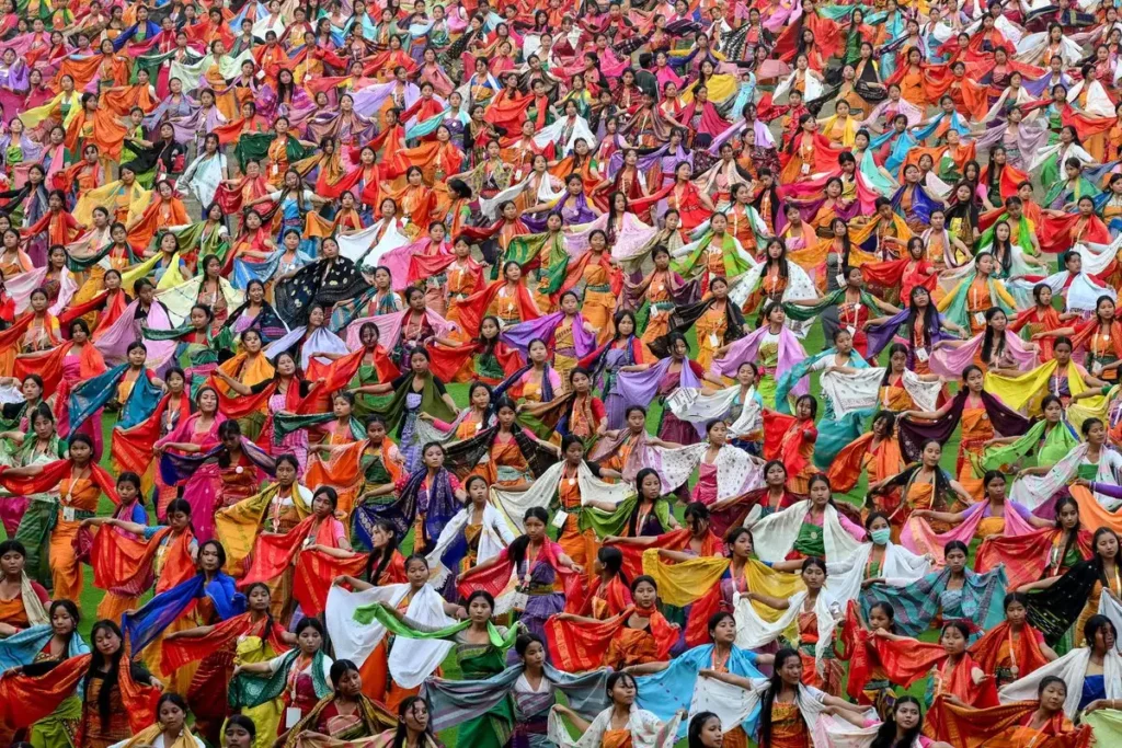 Guwahati se llena de ritmo y color mientras un grupo de bailarines ensaya la tradicional danza Bagurumba en el Estadio Sarusajai. Con movimientos suaves y sincronizados, esta expresión cultural ancestral se prepara para el festival Bwisagu, una celebración que marca el Año Nuevo del pueblo Bodo y el renacer de la naturaleza. Los trajes vibrantes, la música y la energía colectiva transforman cada ensayo en un espectáculo cargado de identidad y emoción. En esta ciudad del noreste de India, la danza no es solo arte: es memoria, celebración y un puente vivo entre generaciones que mantienen sus tradiciones con orgullo y alegría. 💃✨